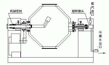 - 在動力驅(qū)動下,罐體作緩慢旋轉(zhuǎn),罐內(nèi)物料不斷地混合,從而達(dá)到強(qiáng)化干燥的目的。