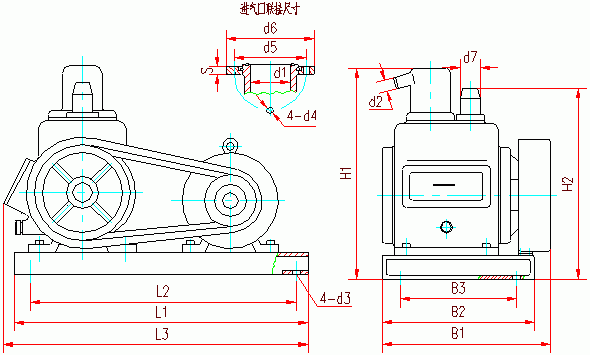2X系列雙級旋片真空泵安裝尺寸: